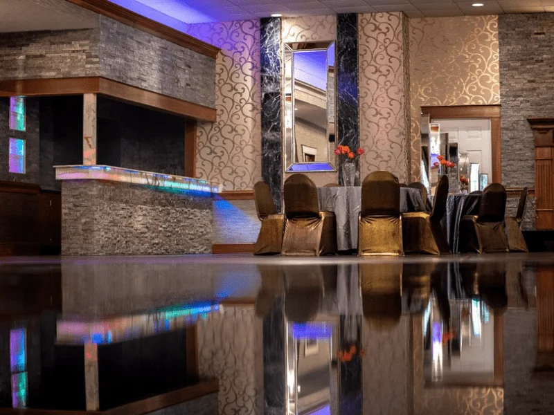 Step into our newly renovated event hall, where excellence meets design. Our hall, an artistic collaboration, boasts sophistication that reflects the burning passion of love. The granite dance floor, Swarovski Crystal Chandeliers, and custom bar lights promise an unforgettable experience.